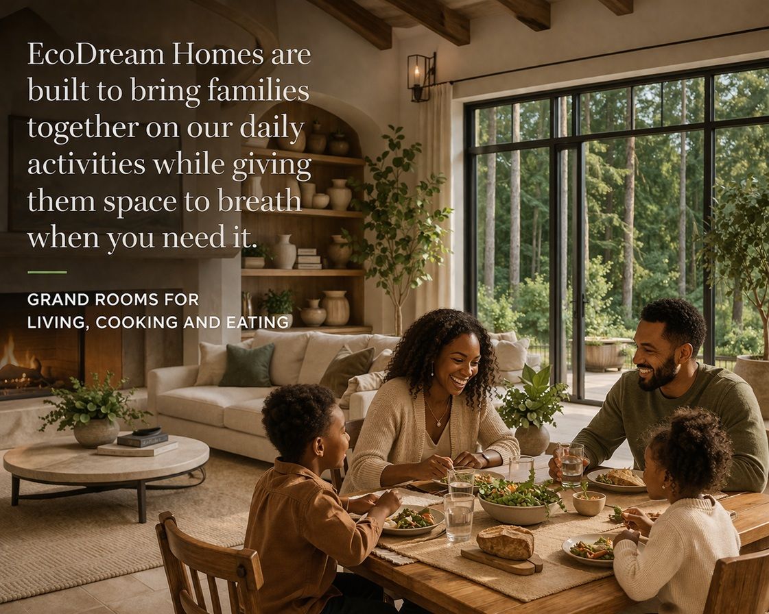 EcoDream Homes are built to bring families together on our daily activities while giving them space to breath when you need it. Grand rooms for living, cooking and eating